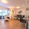 Herd, Backofen, Mikrowelle, Kühlschrank mit Gefrierfach, Geschirrspüler, Kaffeemaschine, Toaster, Wasserkocher und zahlreiche Küchenutensilien. Ein offener Wohn- und Essbereich mit Esstisch schafft eine gemütliche Atmosphäre für gemeinsame Mahlzeiten.
