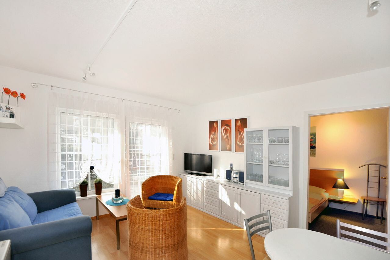 Die Ferienwohnung in Zinnowitz ist ideal für 2 Erwachsene und 2 Kinder oder 2 Erwachsene geeignet und bietet ganzjährig einen komfortablen Aufenthalt. Sie befindet sich in einem Mehrfamilienhaus mit separatem Eingang und verfügt über eine Terrasse. Ein Parkplatz gehört ebenfalls zur Wohnung. Im Wohnzimmer befindet sich eine kleine Küche mit Essecke und Couch, sowie ein Flachbildfernseher. Das Schlafzimmer ist mit einem Doppelbett und einem Kleiderschrank ausgestattet. Im zweiten Schlafzimmer gibt es Etagenbetten für 2 Personen. Das Badezimmer verfügt über eine Dusche. Die Wohnung wird mit angenehmen Infrarot-Heizkörpern beheizt. Für Fahrräder steht ein abschließbarer Fahrradschuppen zur Verfügung. Bettwäsche und Handtücher sind im Buchungspreis enthalten.