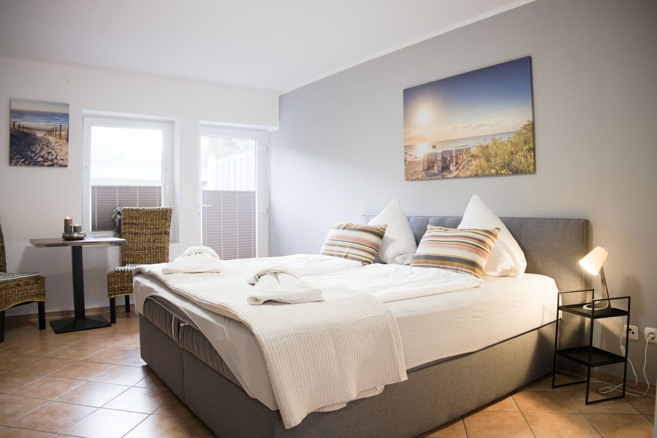 Das Doppelzimmer "Rollmops" mit separater Küche in der Pension "Seeräubär" in Koserow, einem idyllischen Seebad an der Ostsee, bietet auf 24 m² Platz für maximal 2 Personen. Sie verfügt über eine kleine Küche mit Gefrierkombi, ein gemütliches Zimmer und ein Badezimmer. Die Ausstattung umfasst eine Terrasse, auf der Sie entspannte Stunden im Freien genießen können. Auch Haustiere sind in der Unterkunft herzlich willkommen. Ein Pkw-Stellplatz ist ebenfalls vorhanden.